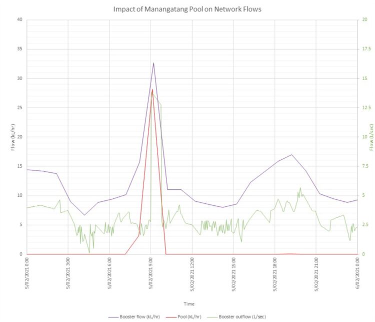 GWMWater was also able to identify and address a failed non-return valve at a Sewer Pump Station (SPS), reducing daily power consumption. The daily outflow measured at the SPS was compared to customer daily water usage in the sewer catchment area. Customer usage was less than the outflow at the SPS which indicated that more water was leaving the sewer catchment area than what was being supplied. This triggered an investigation at the SPS, which found a failed non-return valve was causing a portion of the waste water already evacuated from the SPS to return back into the SPS. With the non-return valve fixed the circulation of waste water ceased, reducing the previously pumped ~120 kL/day down to ~60 kL/day (reducing the pump runtime by ~35%).