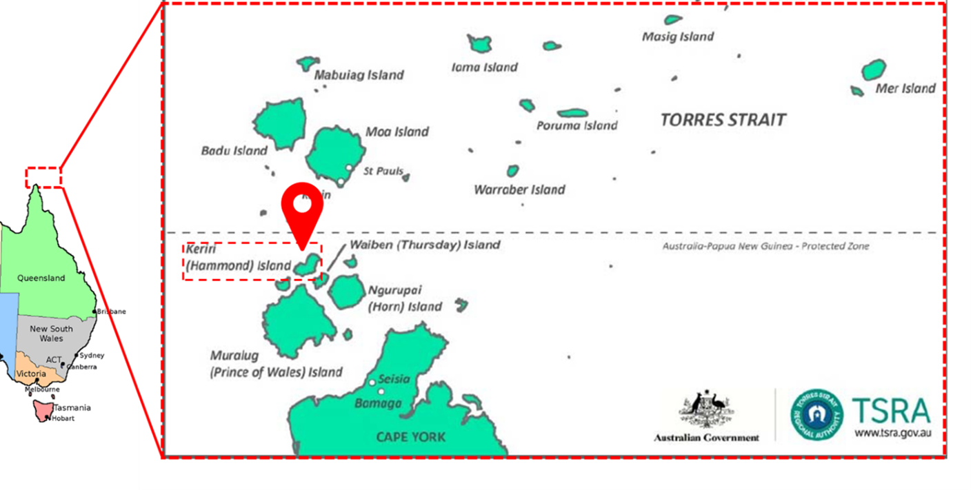 The Kirirri community is located in the traditional lands and seas of the Kaurareg people. The languages spoken in the community of approximately 250 residents is the Kalau Kawau Ya dialect and Torres Strait Creole (broken English). The community is located a short distance from Thursday Island, the main business hub of the Torres Straits, and is only accessed by boat or aircraft (Figure 1).