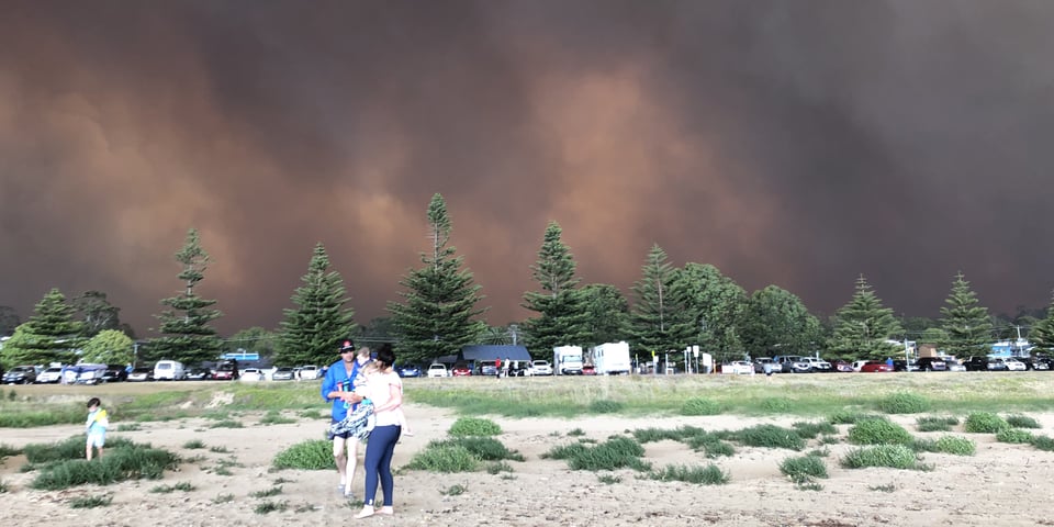 Heading to the beach as the fires come closer. Image: Isobel Davis
