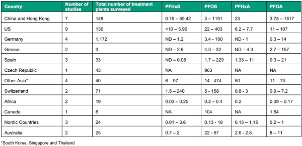 Table 2 provides a summary of published PFAS concentrations in biosolids based on geographic location for comparison with the data provided in Table 1.