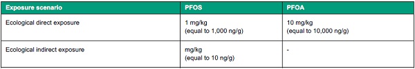 - Perfluorooctanoic acid (PFOA) 0.0025 mg/kg, dry weight (2.5 ng/g).