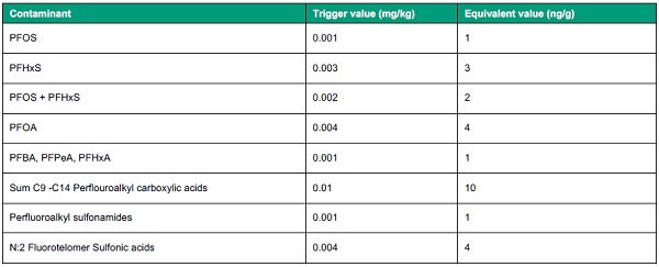 - The Netherlands has taken a different approach of only limiting PFOS and PFOA under a temporary regulatory arrangement. The ubiquitous nature of PFAS in soils saw many dredging and construction works paused in 2019 causing some political pushback on these limits.