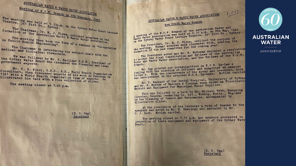 Minutes of the inaugural meeting of the NSW Branch of the Australian Association of Water and Sewage Treatment