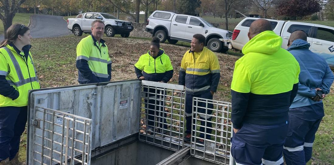 At Ozwater’23, with the support of Tony from Goulburn Valley Water, Scravin and Benjamin held several promising meetings with contractors to discuss designs for solutions to the saltwater intrusion challenge. The following week, Scravin and Benjamin joined some of their Solomon Water colleagues for a week-long study tour at Goulburn Valley Water, where they worked together to finalise a year-long collaborative action plan to address not only the saltwater intrusion issue, but also designed interventions to reduce major pressure management issues, which are leading to an unsustainable level of water loss in the Solomon Water network in the capital Honiara.