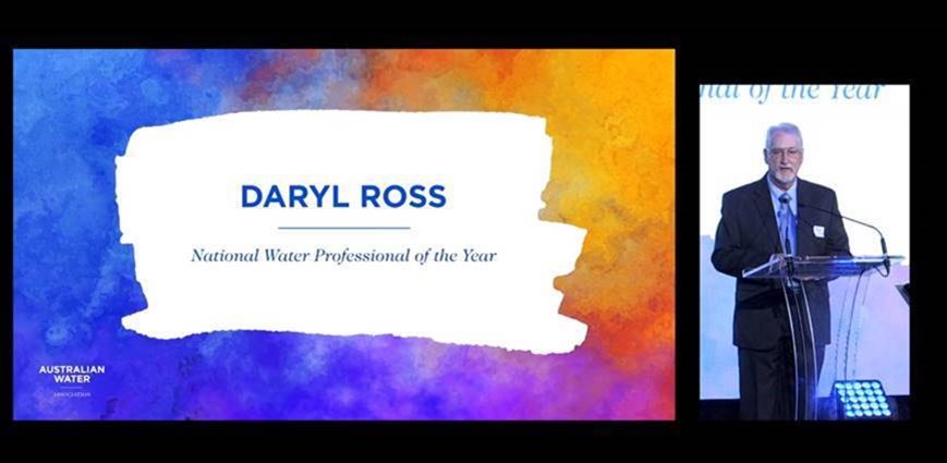 Logan City Council’s retiring (former) Acting Director – Road and Water Infrastructure Daryl Ross was presented with his trophy for AWA’s 2020 Australian Water Professional of the Year accolade announced earlier in the year.