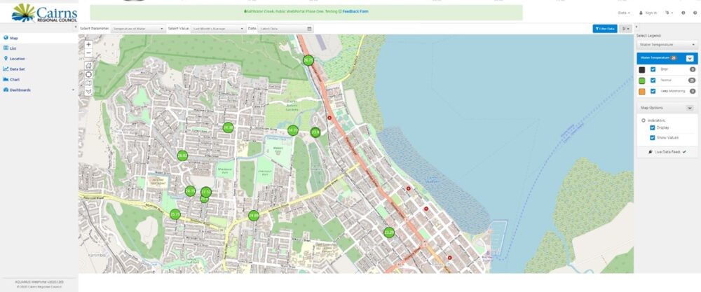 A commercially available, cloud-based water data management platform was selected for the capture, analysis and display of the data (discharge, water quality, rainfall). Key criteria considered in selecting a suitable platform included: the maturity of the water analytics capacity; track record; security for Council’s information technology systems; flexibility with management of data; simplicity in display of data and most importantly, its capacity to automatically pull data from several sources, integrate and make them publicly available through a web based platform.