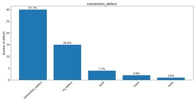 Figure 5: Repartition of the actual category of defects for the 1 m-long pipe sections identified by VAPAR algorithm as having a ‘connection defect’.
