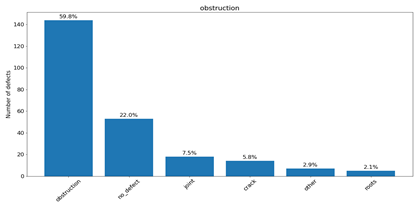 Figure 6: Repartition of the actual category of defects for the 1m-long pipe sections identified by VAPAR algorithm as having an obstruction.