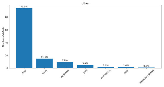 Figure 9: Repartition of the actual category of defects for the 1m-long pipe sections identified by VAPAR algorithm as having a defect in the ‘other’ category.