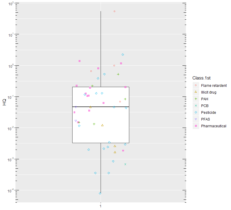 - Pharmaceutical and nicotine drug metabolite cotinine (HQ=1.4) [“low risk”]