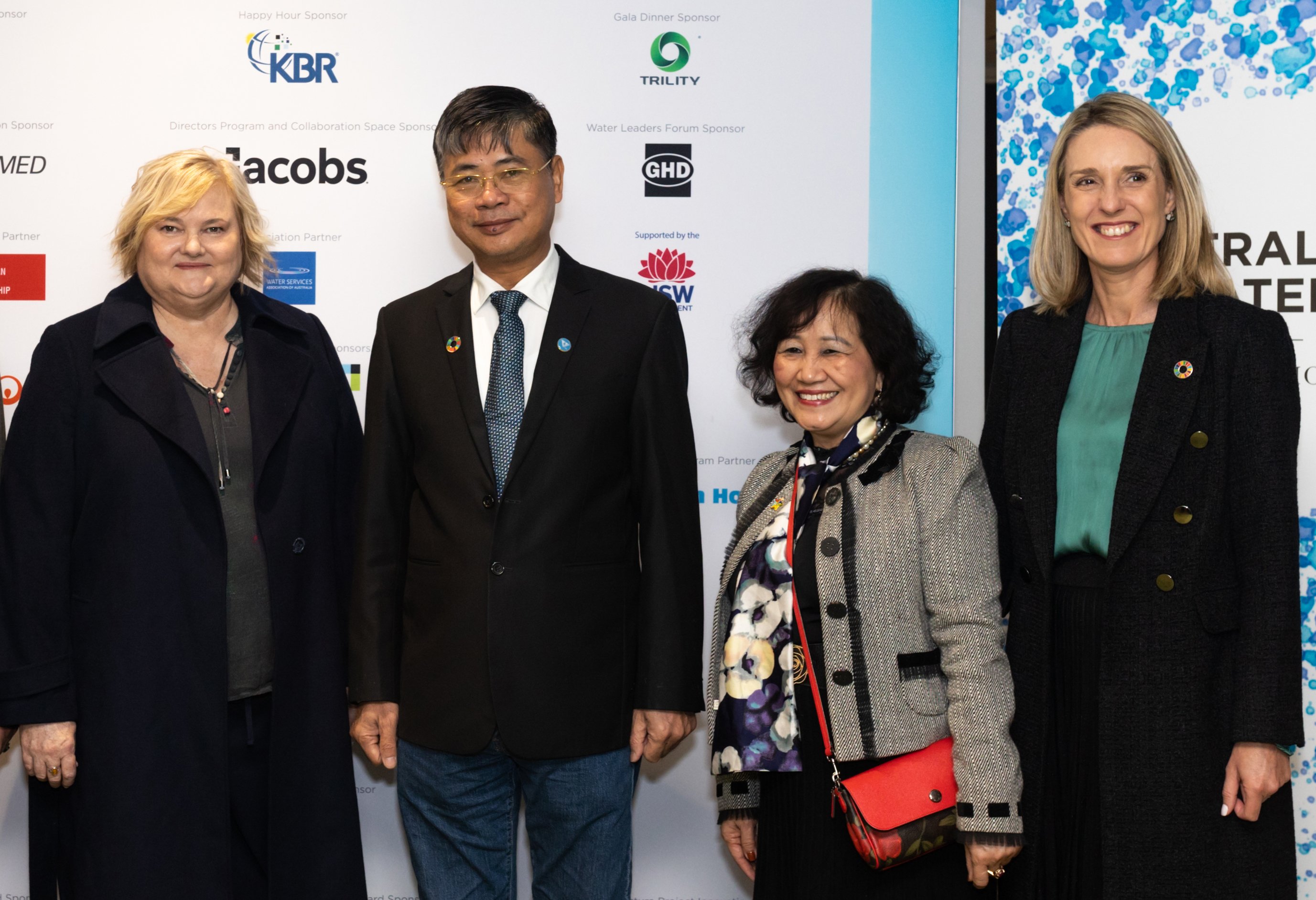 AWA Board Director Louise Dudley with VWSA Chairman Dr Nguyen Ngoc Diep, VWSA Vice Chairwoman Ms Ha Thanh Hang, and AWA CEO Corinne Cheeseman at Ozwater’23 (L-R).