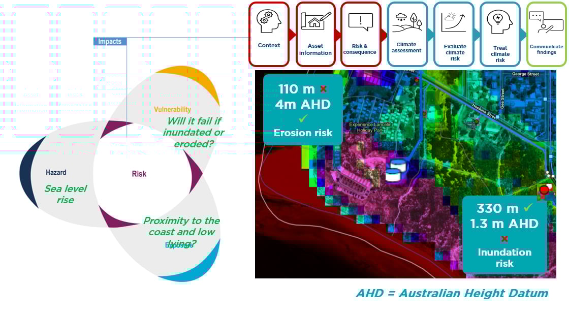 For sea level rise, we can focus efforts to understand priority risks and understand our most impacted asset classes, such as sewerage pump stations or drainage assets.