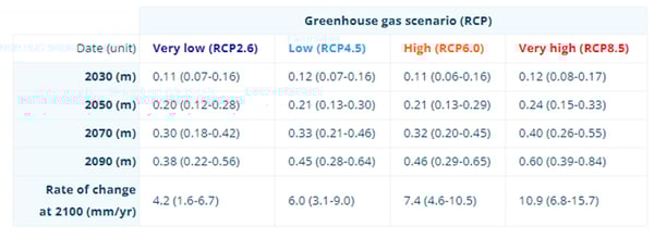 Sea level rise (relative to an average calculated between 1986 - 2005)