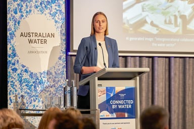 Delegates were then immersed in two Keynote presentations by David Symons (Global Future Ready Innovation Lead and Director – Earth and Environment, WSP) on megatrends and by Chelsea Hayward (2023 Australian Young Water Professional of the Year) who delivered a call to action for more intergenerational collaboration to be created for the support of young professionals in the industry.